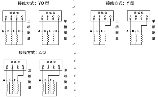 注意:A、B、C三相動觸頭短接后接到儀器的中性點接線端子上